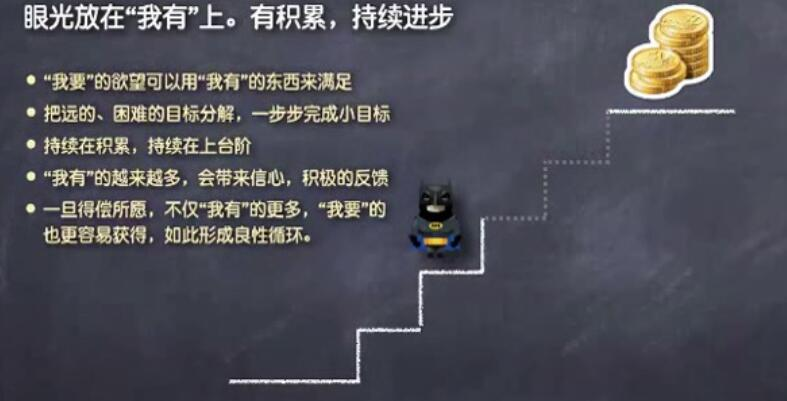 这是我的个人补充,对现有资源的整合,然后再加上最近的努力奋斗,是非常重要的一个观点,身边的朋友包括我都是有时候感觉很迷茫,无所事事,然后我问盆友,为什么你不去教室,图书馆学习啊,他们一般的回答是:我已经这样了,我大学四年都这样废下来了,我不知道自己的目标是什么,去了教室,图书馆也不知道干什么,但我发现他们很多都有一个共性:1.喜欢看小说 2.如果说出去走走一定很积极.