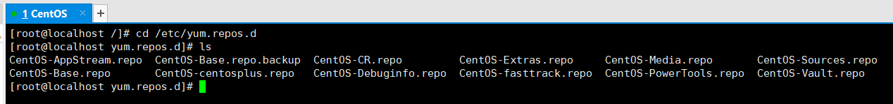 先备份好原生的仓库CentOS-Base.repo,一般取名是在后面加backup。再将刚才下载的Centos-8.repo改名为CentOS-Base.repo