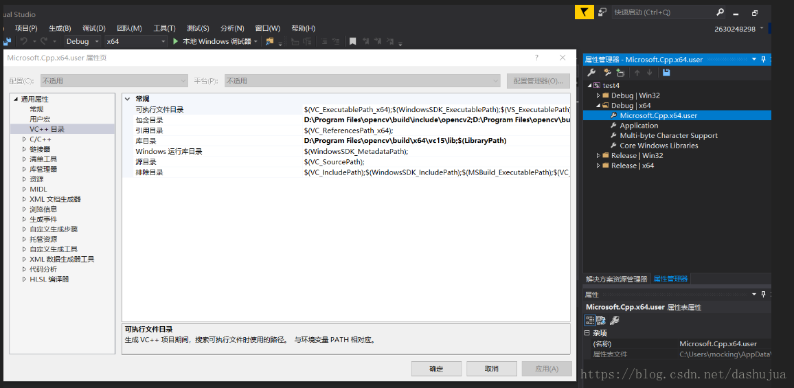 1. 新建空项目或控制台应用程序之后,在属性管理器中进行一次配置,就相当于进行了通用的配置,之后新建的工程就不用再进行额外的配置了。(视图 --> 属性窗口)