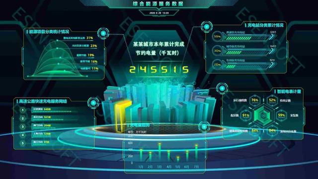 智慧电力可视化大屏:有效整合电力部门现有信息系统的数据资源,覆盖基建、运检、调度、生产、营销、安监等多个业务领域,凭借先进的人机交互方式,实现数据融合、数据显示、数据分析、数据监测指挥等多种功能,可广泛应用于监测指挥、分析研判、展示汇报等场景。