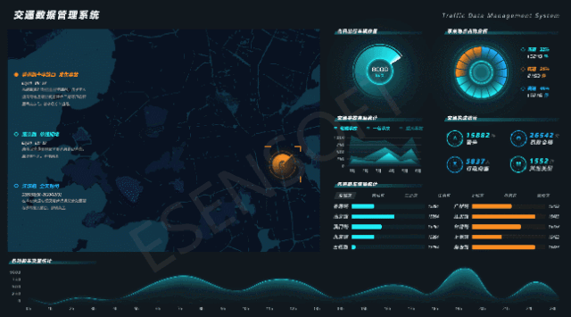 智慧交通可视化大屏:交通大屏集成地理信息系统、视频监控系统、交管部门各业务系统数据,对交通路况、警力分布、警情事件、接处警情况等要素进行综合监测,能够帮助管理者实时掌握交通整体运行态势。