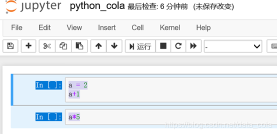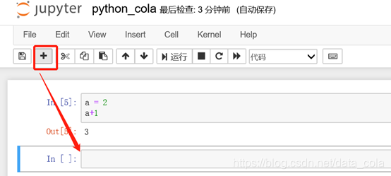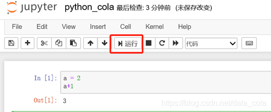 Jupyter是一个一个代码块的形式,输入如下代码,点击运行按钮,就可以执行这个代码块。