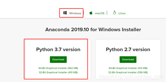 Step2:选择相应电脑类型,如windows,选择python版本,如3.7,点击download下载即可。