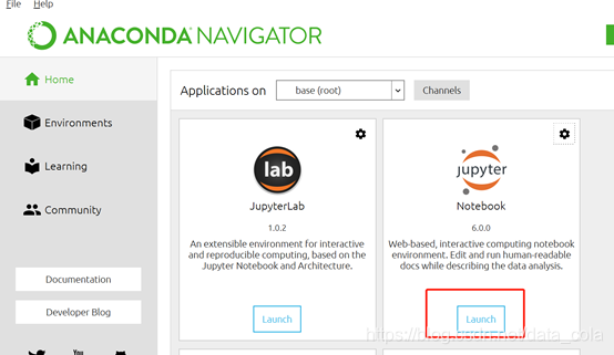也可以从Anaconda Navigator中进入Jupyter,如下: