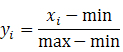 其中,min为该组数据的最小值,max为该组数据的最大值,yi