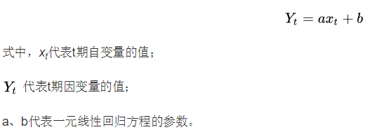 只涉及一个变量的称为一元回归,且变量之间为线性关系的称为一元线性回归,其回归方程可以表示为: