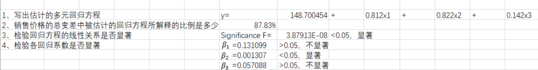 这里用F检验说明的是总体的显著性,总的多元回归方程是否具有线性关系,若要判断每个自变量对因变量的影响是否显著,则需要分别进行t检验