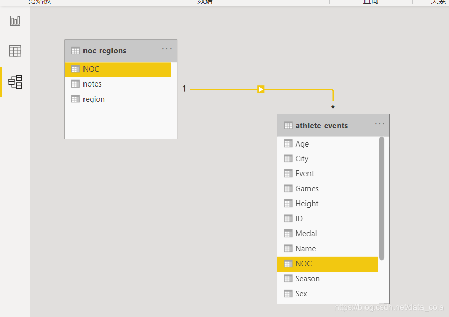 将两份数据以NOC为共同字段进行关联,就可以得到每个运动员所属的国家/地区了。