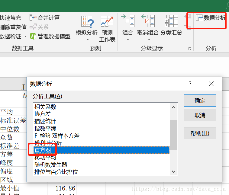 展示分组数据分布的图形。通过直方图可以看出数据的分布形状、分布的中心位置及数据分散的程度,由此判断数据是否符合正态分布。