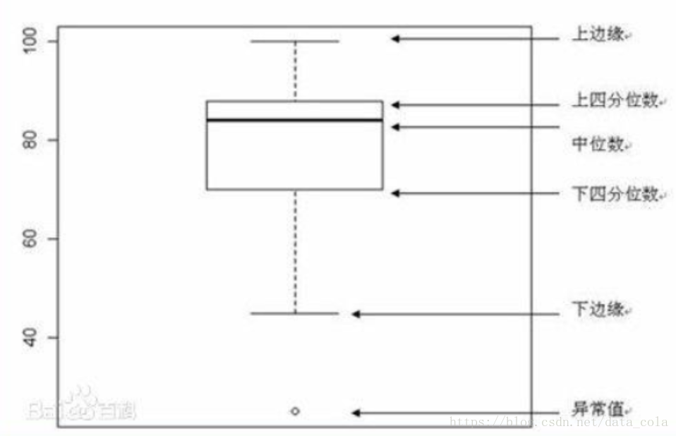 箱线图可以用来比较不同组别的数据。箱线图除了上下四分位数,还有上界(除异常点以外的最大值)、下界(除异常点以外的最小值)