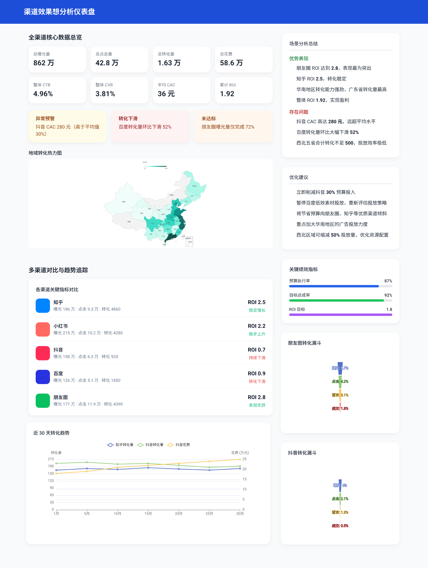 从营销理论来看,渠道价值的判断需基于 “全链路数据闭环”,而非单一曝光或点击指标,核心是通过投入产出比(ROI)、转化效率等多维度综合评估。