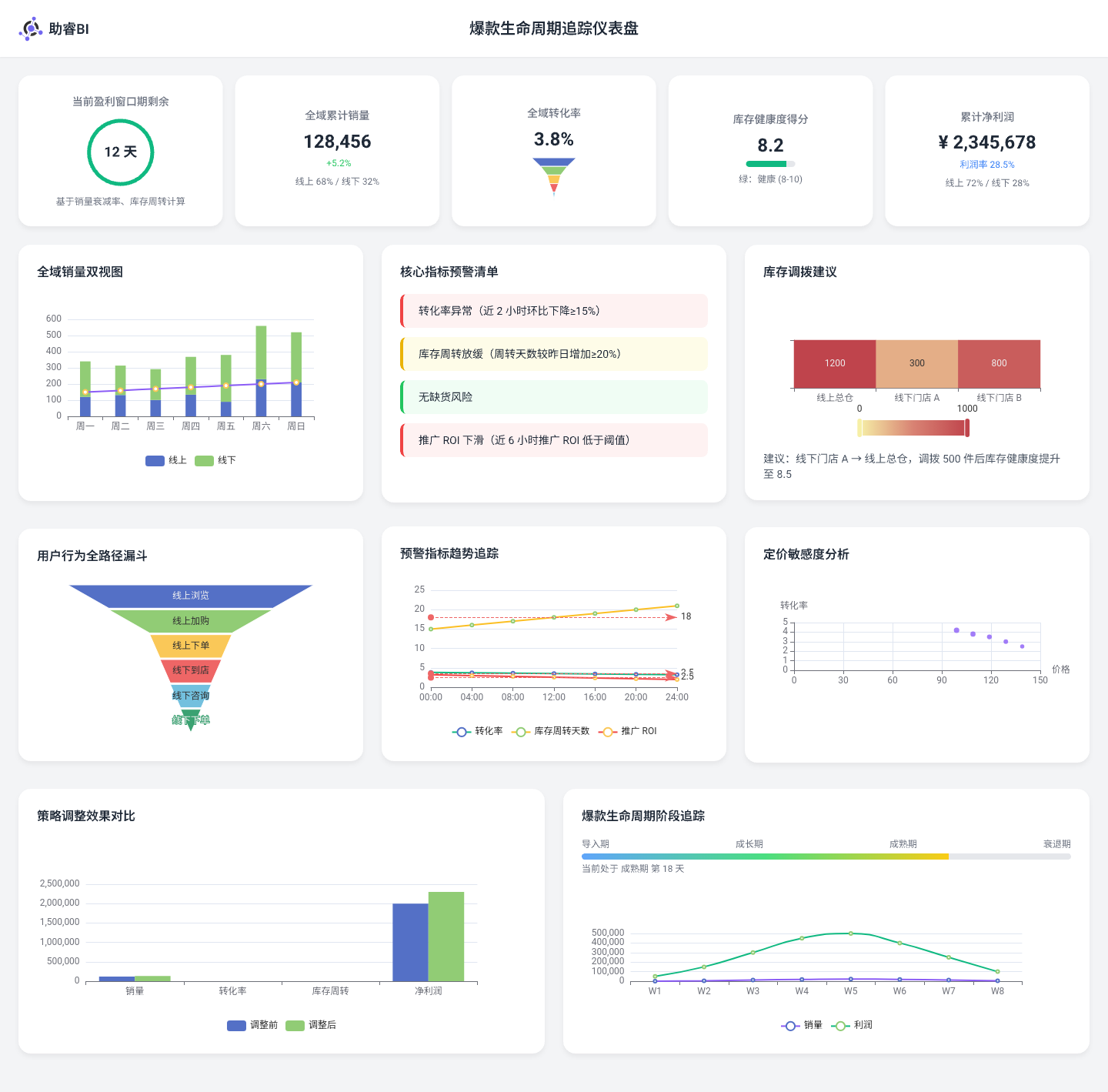 要真正吃透爆款盈利窗口期,关键在于借助助睿BI这样的专业工具,构建"监测-预警-决策-执行"的闭环体系: