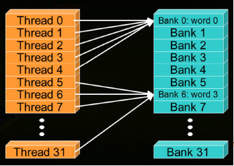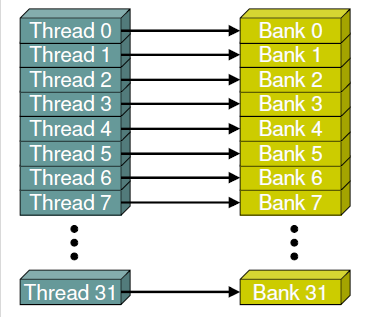 NOTE:不同warp中的线程之间不存在什么bank冲突。