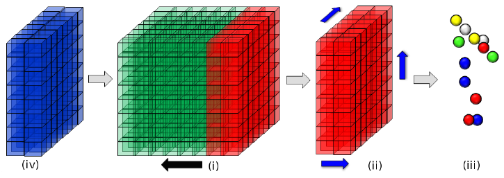 (2) 离开 volume 的红色区域在三个坐标轴方向上提取点,并且红色区域在显存中释放掉
