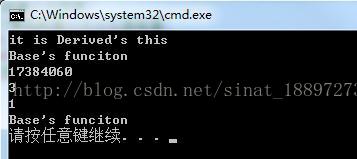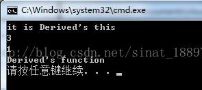 (*d).this_fun(d);//输出的:it is Derived's this 证明:this指针仍然为指向子类 -