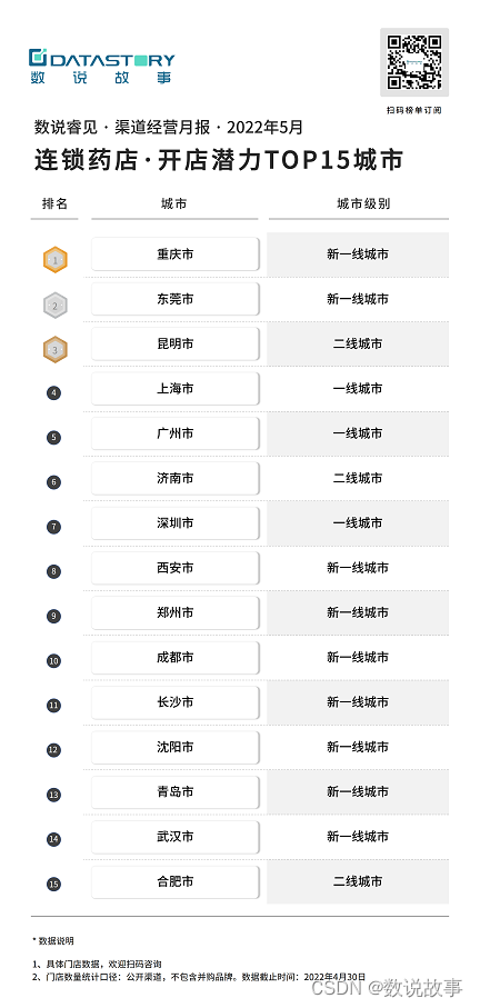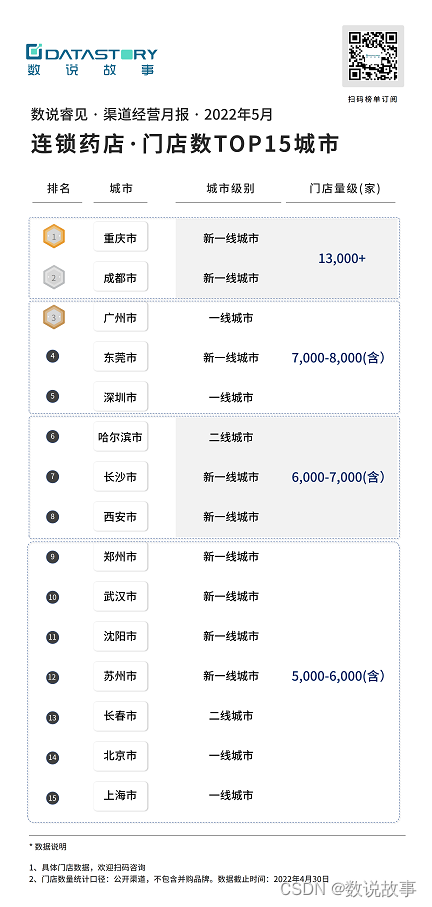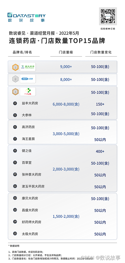 数说故事每月推出渠道经营月报,本期锁定连锁药店门店数量列出月增量最高榜单,与你共观医药健康行业市场商情。
