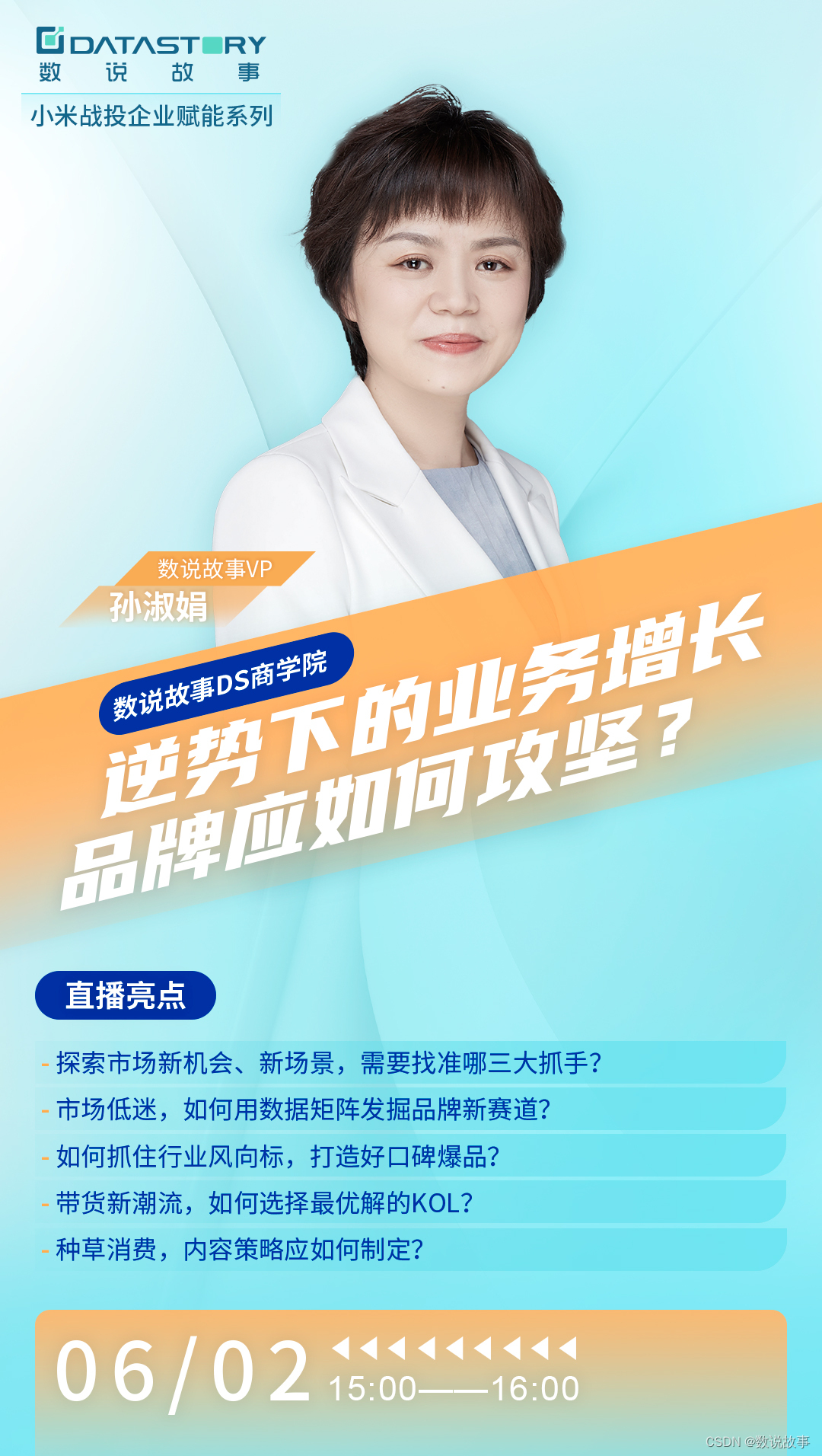 数说故事DS商学院参与打造最新一期的“小米战投企业赋能系列”直播课,以期通过数字化营销实战的深度分享、大势所趋的数字化方式,帮助企业对标自身所处的营销困局,找到与之匹配的解决方案,助力企业营销增长。