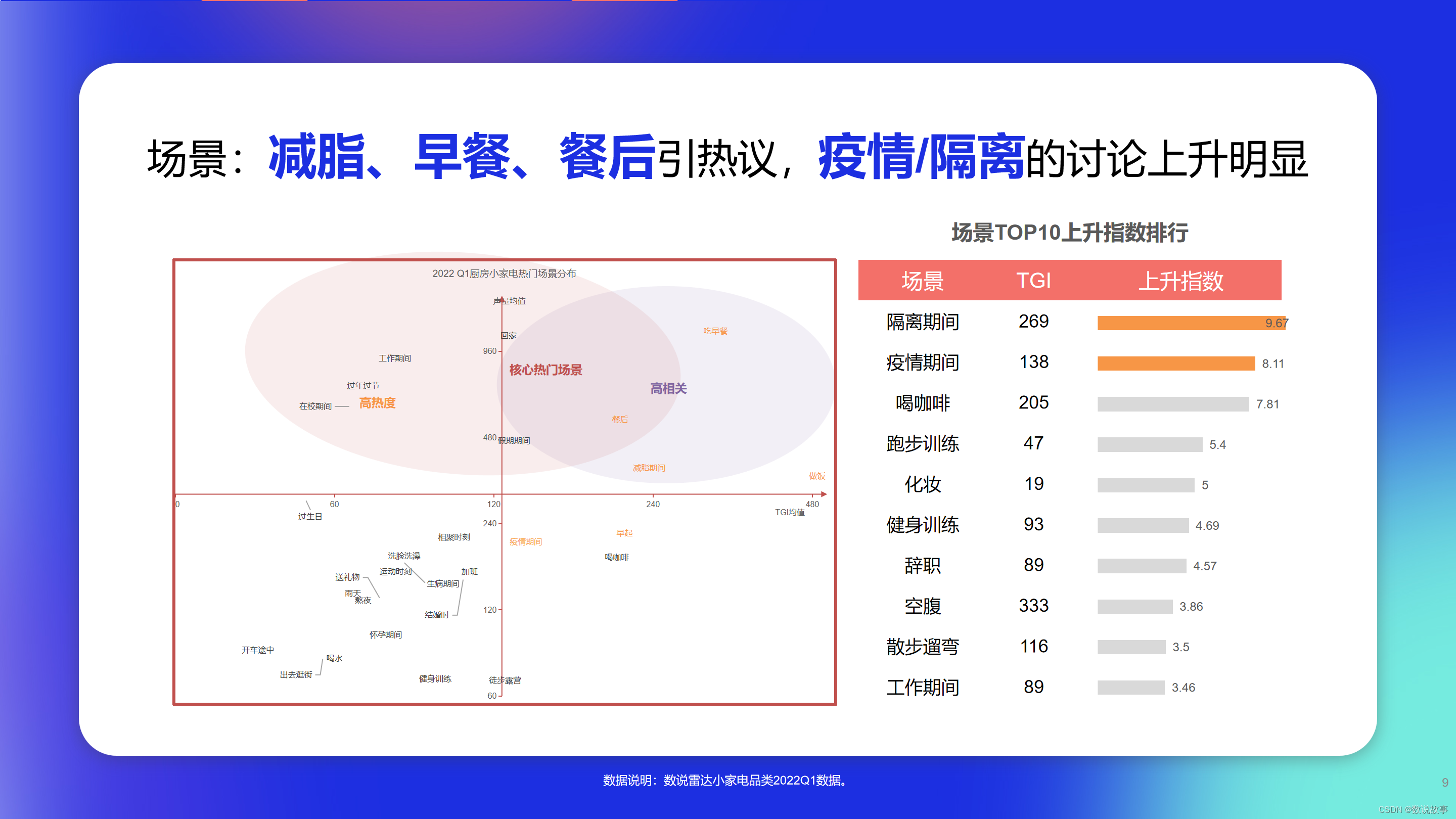 数说故事旗下数说雷达《2022年Q1小家电行业趋势报告》,主要从厨房和生活小家电行业趋势、品类竞争格局、消费者画像、热门场景分析等角度展现小家电行业Q1的市场现状,以及洞察消费需求特征变化,助力品牌进行营销推广和产品创新。