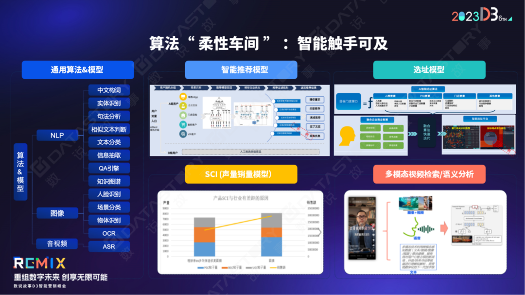 数说故事CTO李旭日提出通过打造高效数字化「柔性供应链」平台,结合AI技术,如AIGC大模型,助力企业实现跨越式发展。平台包含数据集成、模块化处理等功能,支持企业应对消费升级和流量挑战。此外,数说故事发布社媒洞察工具小智Insight,集成大模型能力,提供商业智能问答和超级洞察服务。