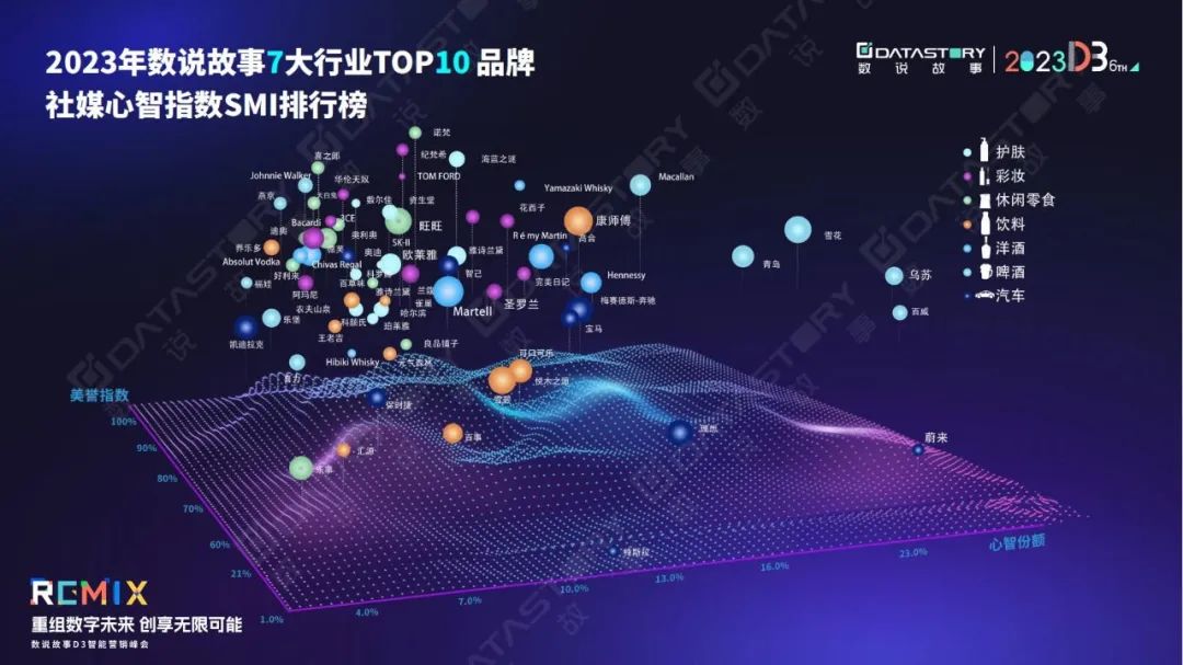 数说故事在D3智能营销峰会上提出「数说故事W-SCC测量体系」,覆盖“人、货、场、域”,解决品牌营销量化问题。同时,通过社媒心智指数SMI,评估品牌在消费者心智中的影响力,助力品牌在不确定时代作出正确决策。该体系结合AI技术,为7大行业品牌提供了社媒心智排名,并发布了商业蓝图,以支持客户的长效增长。