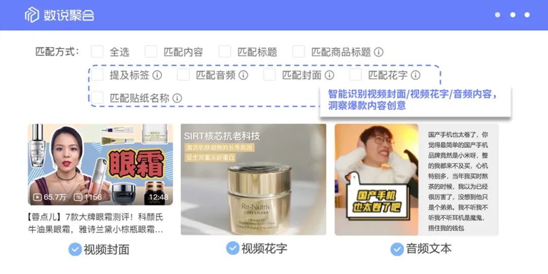 在内容挖掘上,数说聚合为广告人开辟了一条捷径,通过内置的多模态算法模型,能够精准识别小红书、微博、新闻、长短视频、电商等海量站点的音频、图片、花字、贴纸等多媒体内容,深挖爆款标题、爆款文章、爆款图片等内容的核心要点,解决除文本以外的内容探索需求,助力广告人进行批量素材的研究及拆解,更好进行内容生产。