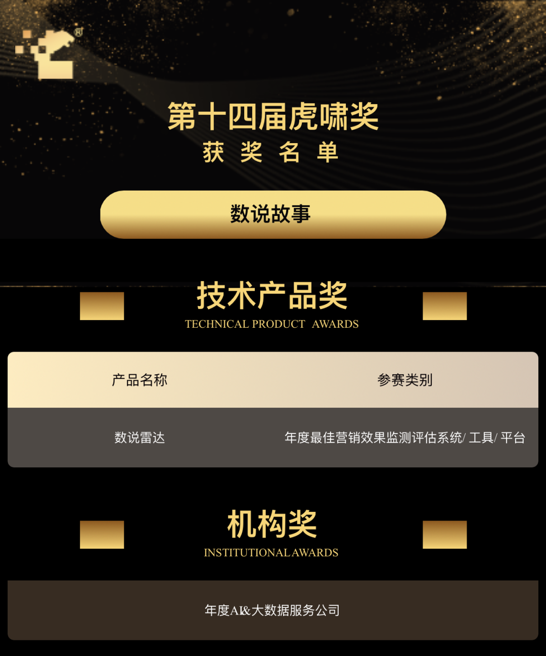 近年来,数说故事旗下数说雷达持续在各大社媒平台探索数字化营销,以更丰富的多媒体识别助力品牌做好社媒聆听,满足营销品牌的多元化场景需求,这也是数说雷达在本届虎啸奖唯一斩获“年度最佳营销效果监测评估系统/工具/平台”的关键所在。