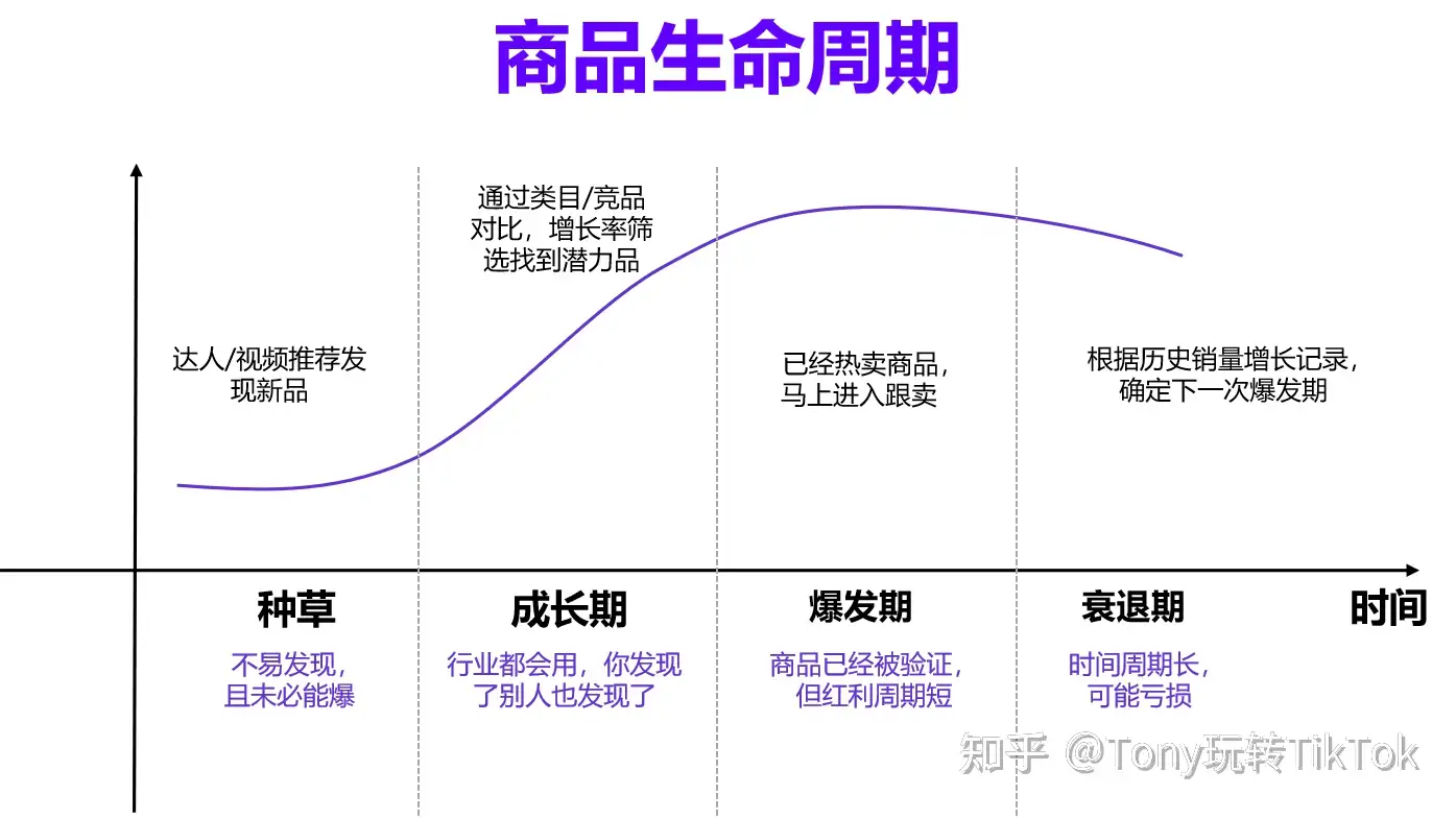 这里我们可以在种草环节介入选品,先发现消费者高需求的高潜商品,再转移到Tik Tok上种草,收割整个商品生命周期红利。如何找到高潜商品呢?