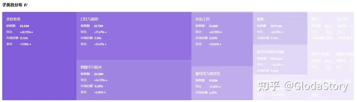 品类市场份额和销售增长:品类的销售额和销量环比增长高,预示这该品类的需求是旺盛了。例如,夏季到来太阳眼镜、泳衣、风扇等商品的销量就会大涨。