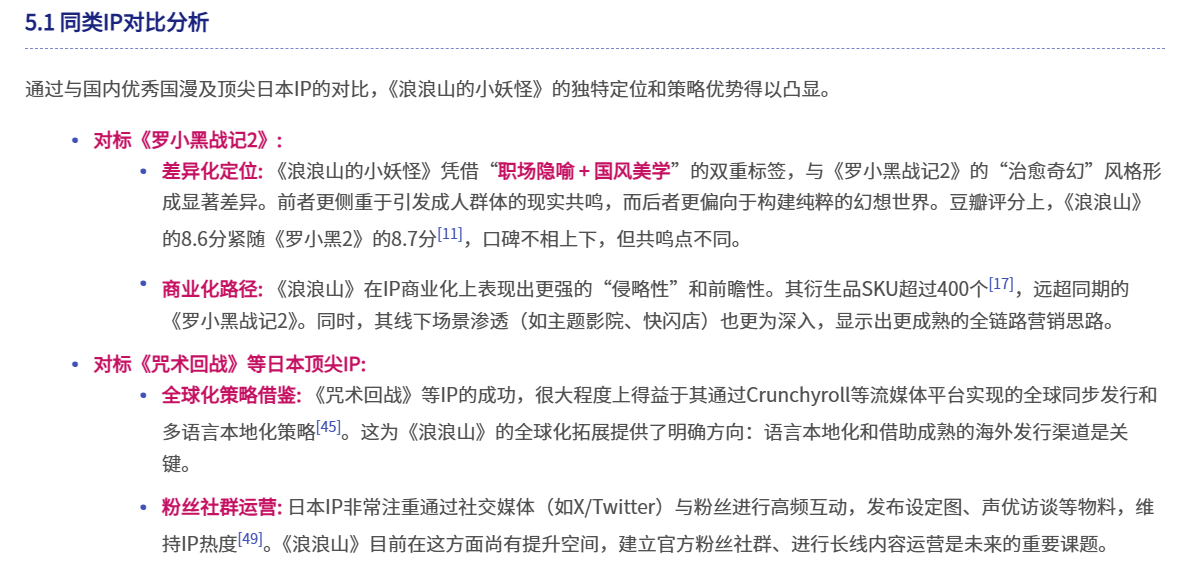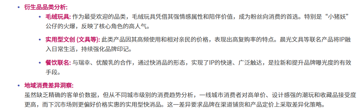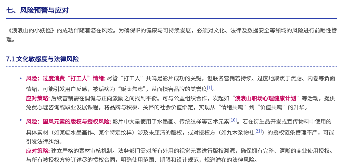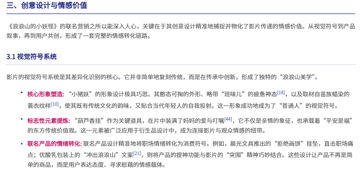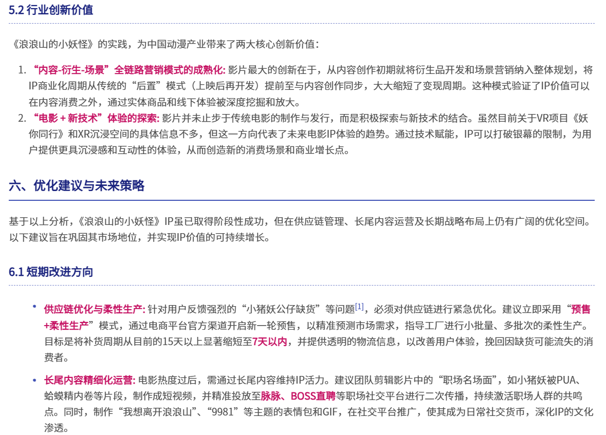 报告指出,《浪浪山的小妖怪》通过“打工人共鸣+国风美学”双引擎驱动,成功实现从二次元圈层到职场人群、家庭受众的破圈传播。《浪浪山小妖怪》联名营销的成功,源于对 IP 核心价值的深刻把握、精准的受众定位及全渠道营销策略的有效实施: