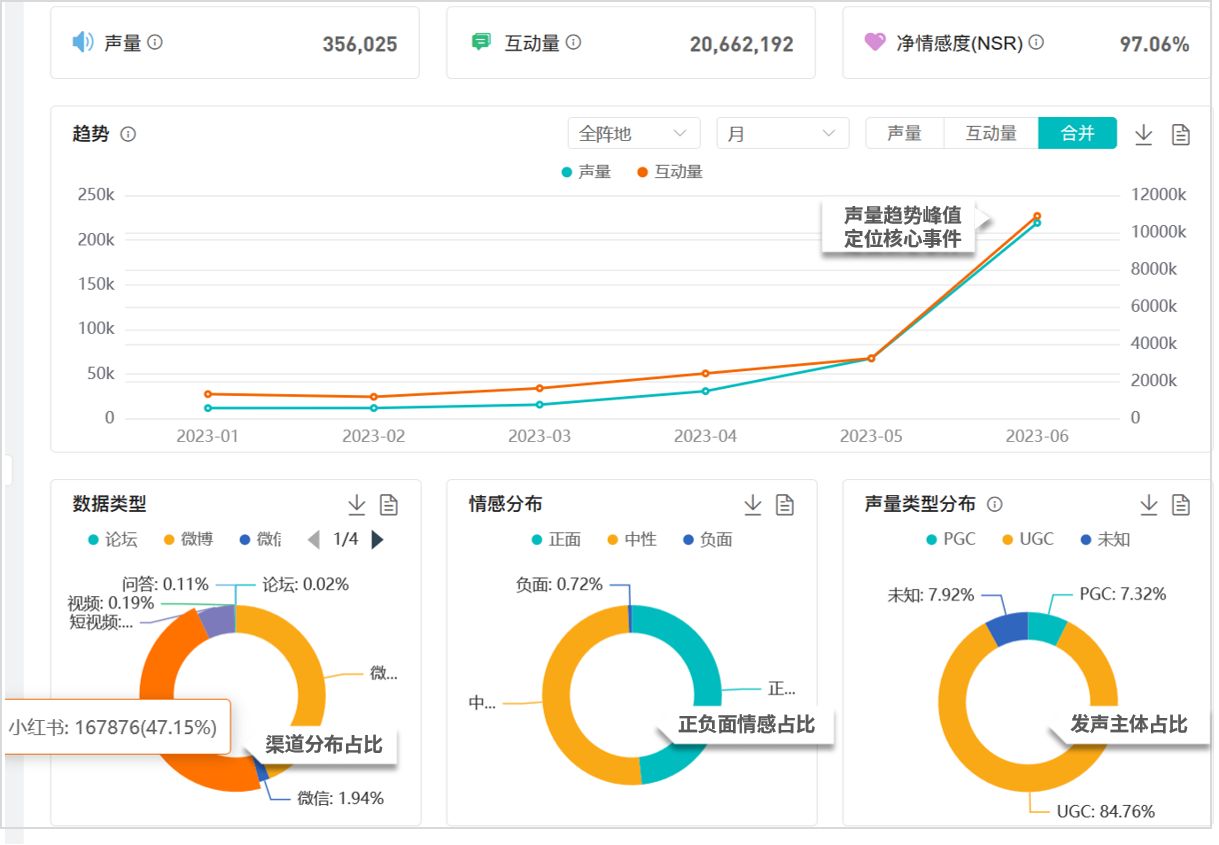 3.多维度分析:数说聚合可根据客户核心需求,对社媒数据进行定制化分析,包括消费者洞察,热点追踪、品牌/产品口碑、营销效果等商业场景。