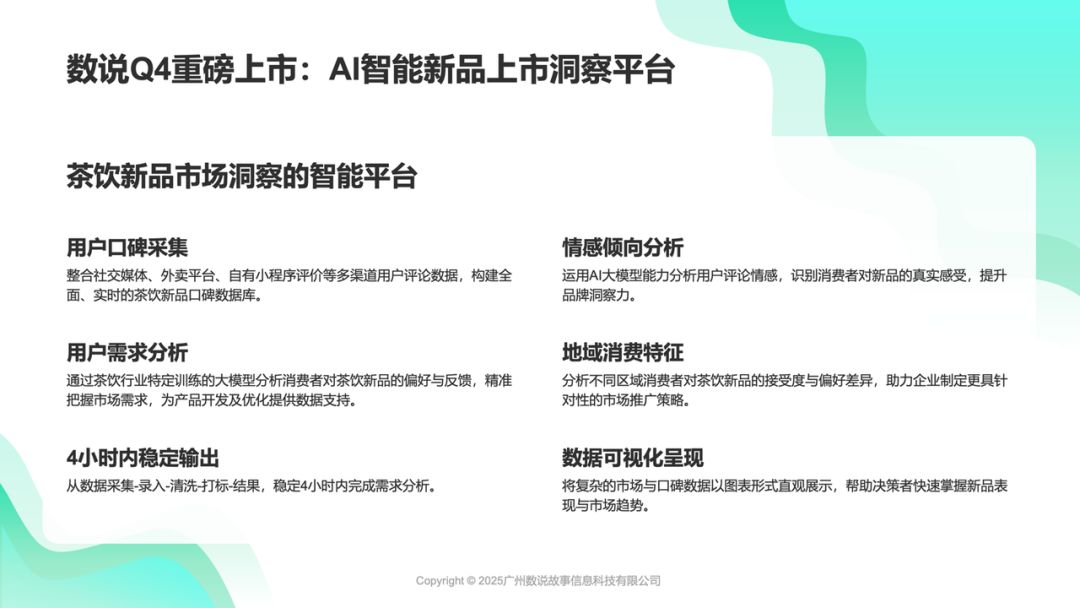 2、AI让数据人感化:依托茶饮行业专属训练大模型,精准识别情感倾向、用户需求挖掘、地域消费特征拆解;