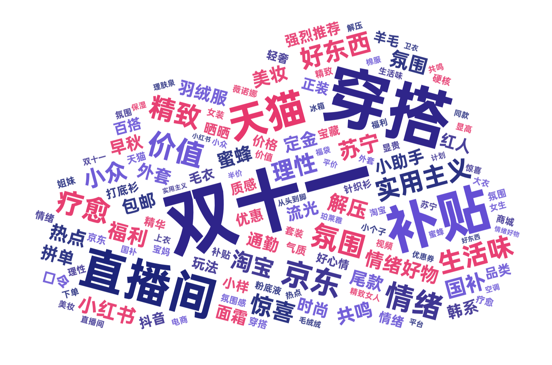 透过数说故事旗下数说聚合数据,今年双十一声量和互动量同比去年明显降温,互动热度下降22%,“购物车截图”“战利品展示”等传统互动大幅减少。从UGC讨论词云来看,用户的互动重心也发生明显转向,除了“直播”“补贴”“福利” 等讨论基础外,“理性”“实用主义”成高频标签。同时,这届消费者更注重情绪感受, “疗愈”“生活味”“氛围”“解压”“惊喜”等突出,“小众”“精致”等成消费者“心动好东西”的方向,消费互动随之从单纯的“价格讨论”转向深层的“价值体验”。