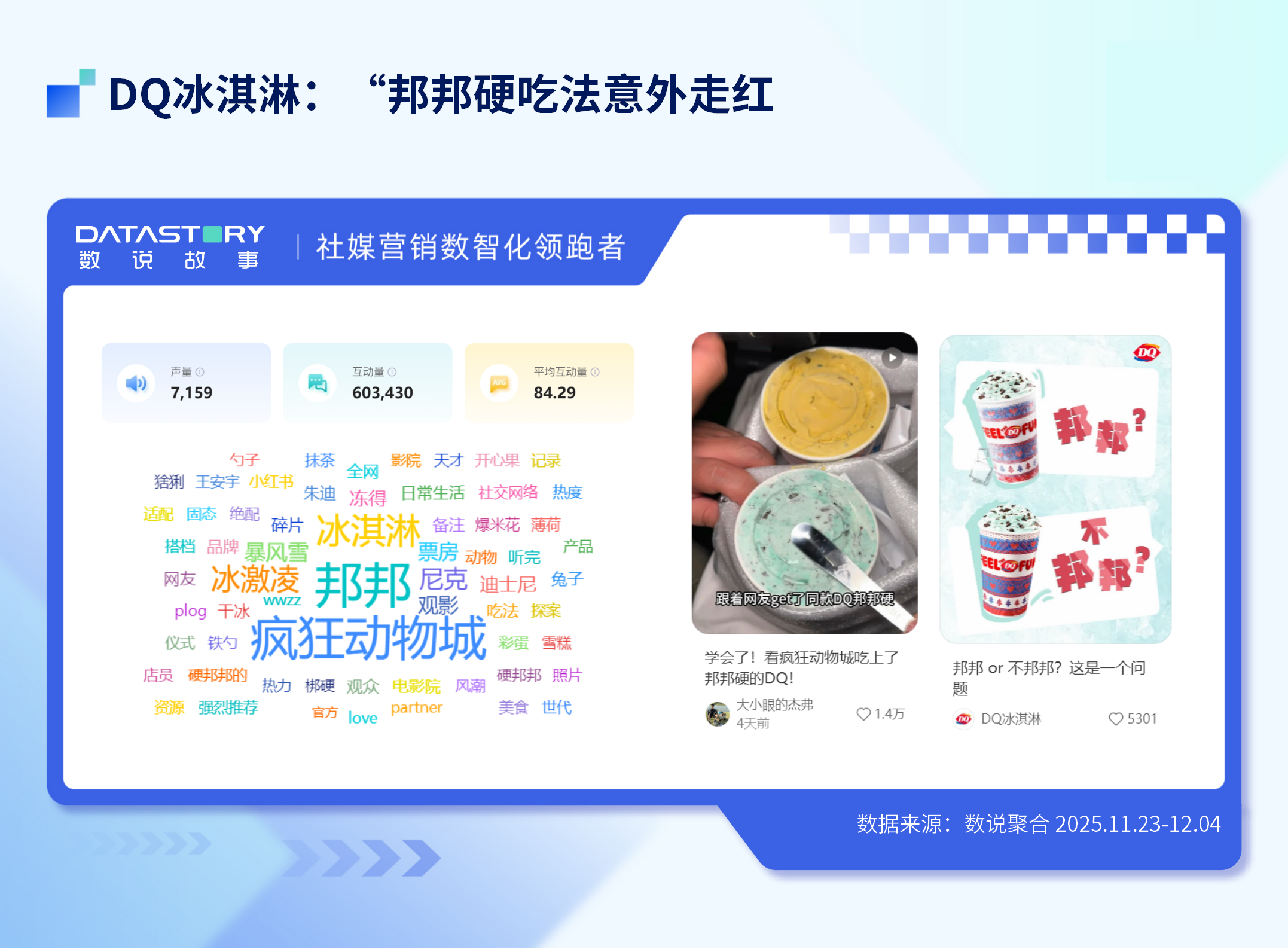 这个由网友发起的天才吃法,让DQ收获了意外的流量,迅速跟进推出官方“邦邦硬套餐”及“观影套餐”,从UGC发起→ 到品牌响应 → 再到UGC参与 → 持续声量,DQ冰淇淋在一系列卷麻了的官方联名中显得异军突起,靠着UGC托举收获了一波天流量,社交媒体上的互动量高达60w+。