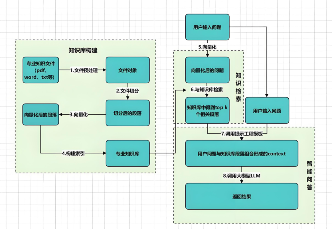 RAG的工作流程可以概括为三个核心环节:检索(Retrieval)、增强(Augmentation)和生成(Generation)。当用户提出问题时,系统首先从外部知识库中检索与问题相关的信息片段,然后将这些信息与原始问题组合成一个增强的提示词,最后输入到大语言模型中生成准确、可信的回答。这种方法相当于给大模型安装了一个“外接大脑”,使其能够突破训练数据的限制,获取最新、最专业的知识。