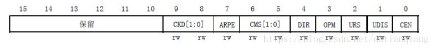 首先是控制寄存器1(TIMx_CR1),该寄存器的各位描述如图所示: