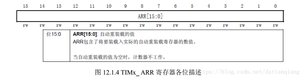 自动重装载寄存器的各位描述如图所示: