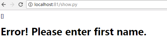 1 #!/usr/bin/python 2 import cgi 3 import json 4 #!/usr/bin/python 5 # print ("Content-Type: text/html") 6 # print ("") 7 # print ("<html>") 8 # print ("<h2>CGI Script Output</h2>") 9 # print ("<p>This page was generated by a Python CGI script.</p>") 10 # print ("</html>") 11 def main(): 12 print ("Content-type: text/html\n") 13 form = cgi.FieldStorage() 14 print(form.keys()) 15 print(type(form)) 16 if form.keys() and form["ServiceCode"].value != "": 17 print ("<h1> Hello",form["ServiceCode"].value,"</h1>" ) 18 19 else: 20 print ("<h1> Error! Please enter first name.</h1>") 21 main()