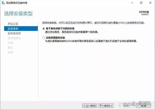 6、选择默认的“基于角色或基于功能的安装”,下一步。