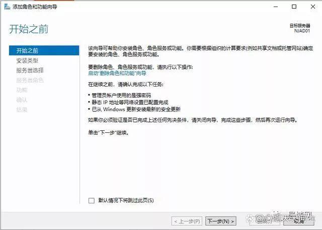 5、“开始之前”,启用向导,进行角色或功能添加,下一步。