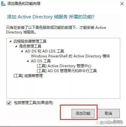 9、勾选后,会跳出如下需要安装的角色或功能,点击“添加功能”。