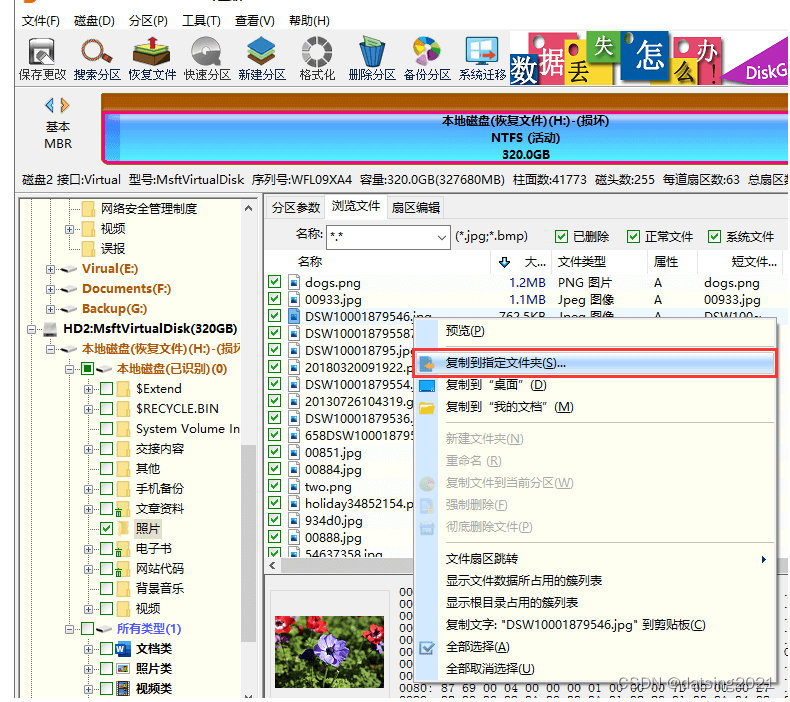 2.要数据的情况, 通过u启动引导盘进入pe系统里,点开DiskGenius软件,这个可以读取raw格式的磁盘文件,如下图,在打开的文件里右键复制 到新的磁盘即可保存文件