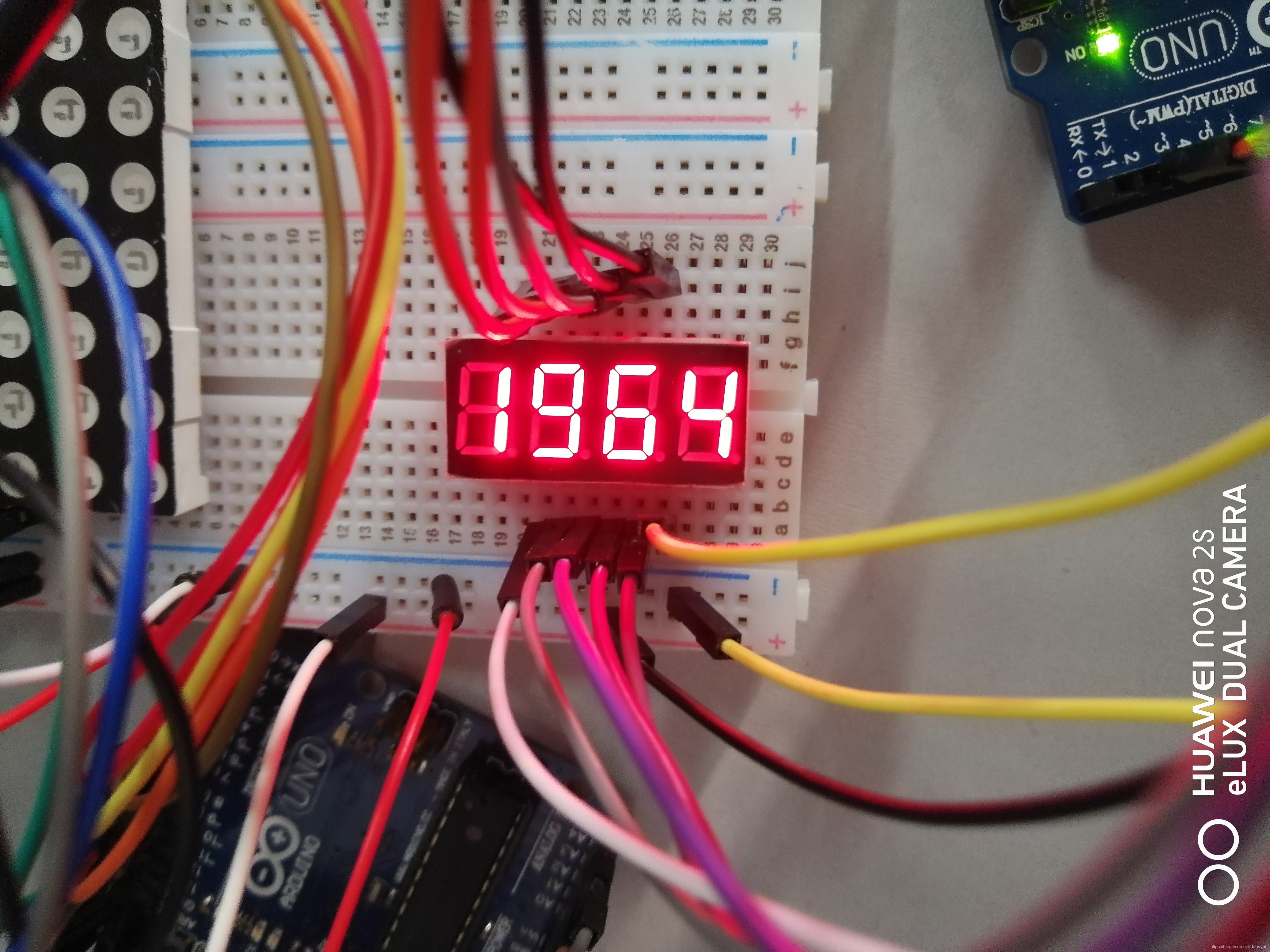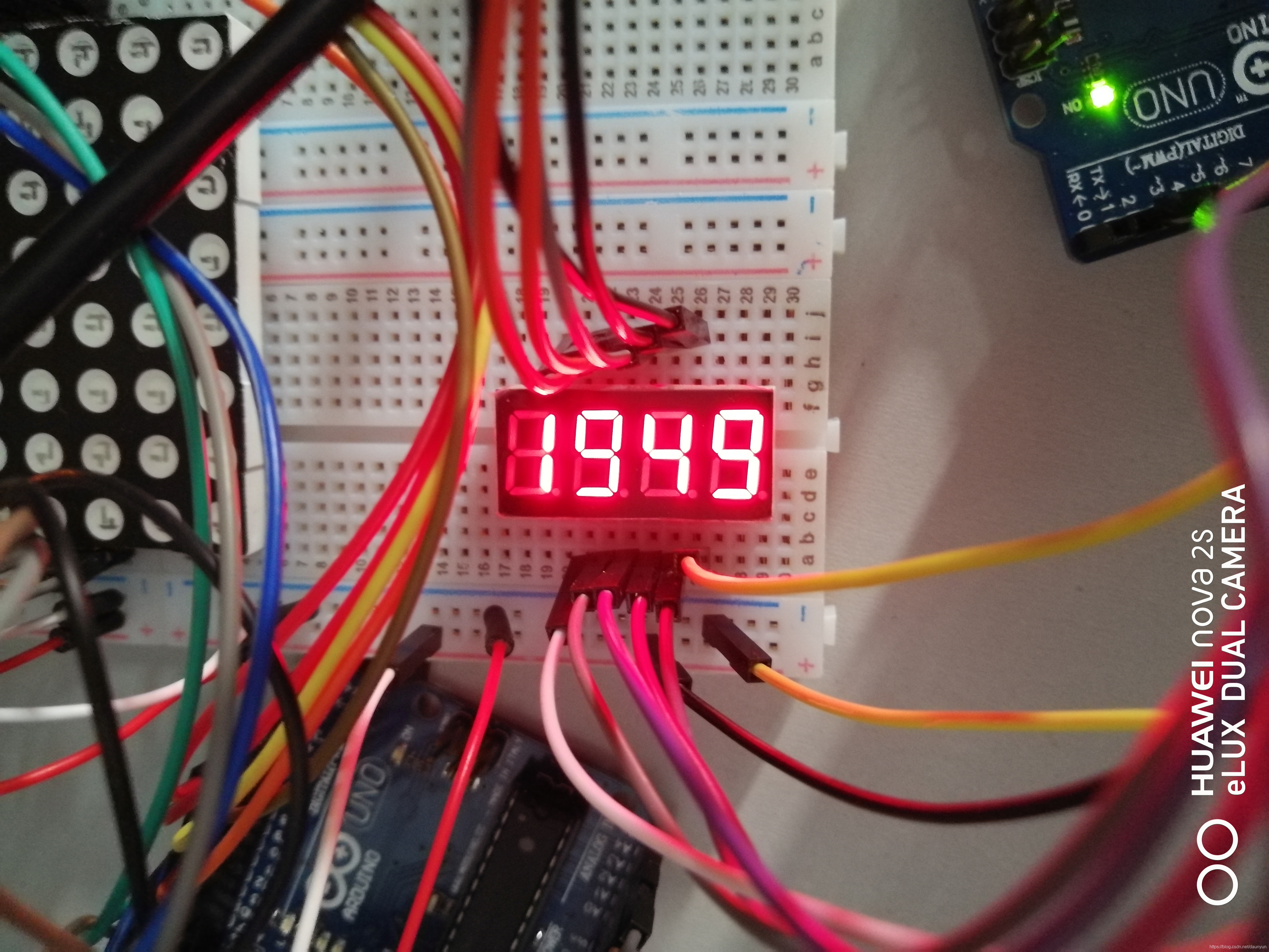 这里实现的是1949到2019的输出。例如显示“1949”时,通过一个for循环,i值的设定可以控制“1949”的停留时间,“1”和“9”之间通过delay 5毫秒,短暂的视觉暂留效果,因此看到的是1949同时显示。