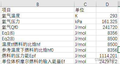 1、单位体积摩尔燃料的输入能量E_f的计算公式如下,这个E_f也就是我们最终想计算的氢气的能量值: