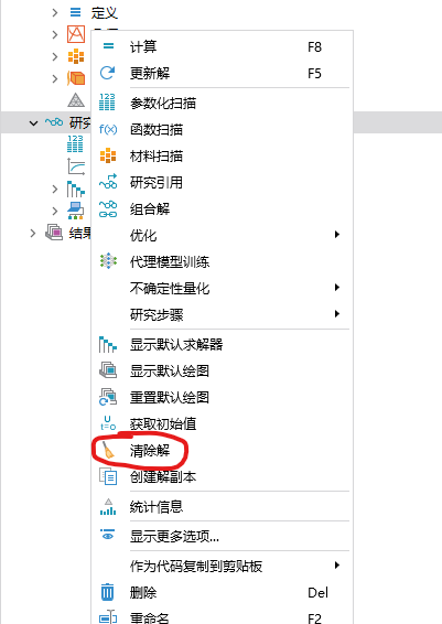 然后在服务器上再跑一遍程序,就是权衡哪个时间短,是再跑一遍时间短还是直接上传远程桌面时间短。可以在“研究”右键中选择“清除解”
