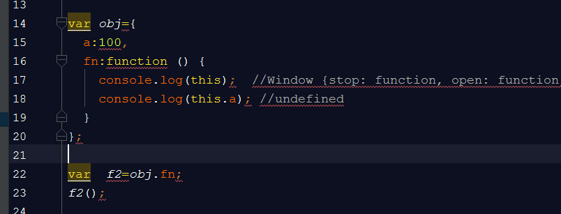 但是,这里fn如果不是作为一个对象的属性被调用,而是被复制到另一个变量中,那么this就指向window,如下代码所示: