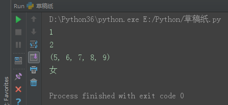 func2(1, 2, 5,6,7,8,9, sex='女')