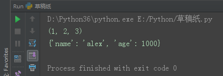 def func3(*args,**kwargs): print(args) func3(1, 2, 3, 1, 2, 3, 11, 22, 33)