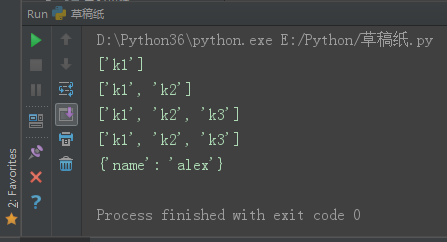 dic = {'k1': 'v1', 'k2': 'v2', 'k3': 'v3', 'name': 'alex'}
