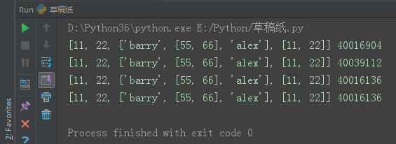 当列表内层列表增加元素时,浅copy跟随变化。内层的列表同样是同一个地址。